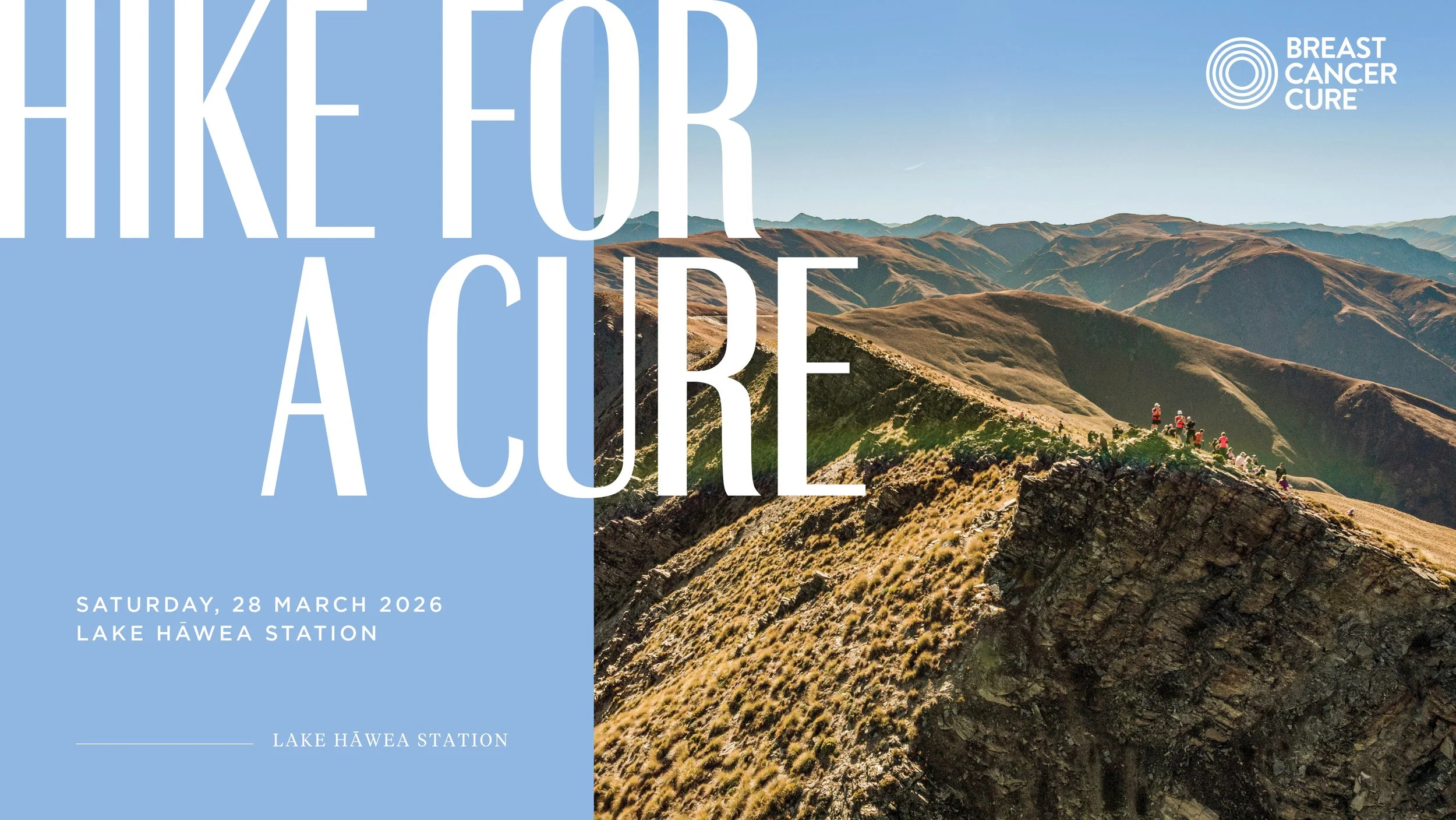 Attending Dine for a Cure? Add a challenge and join us for Hike for a Cure on the morning of Saturday 28 March 2026 at breathtaking Lake Hāwea Station. Choose your distance - from a scenic 5km walk to the epic Double Summit - and help fund vital breast cancer research.